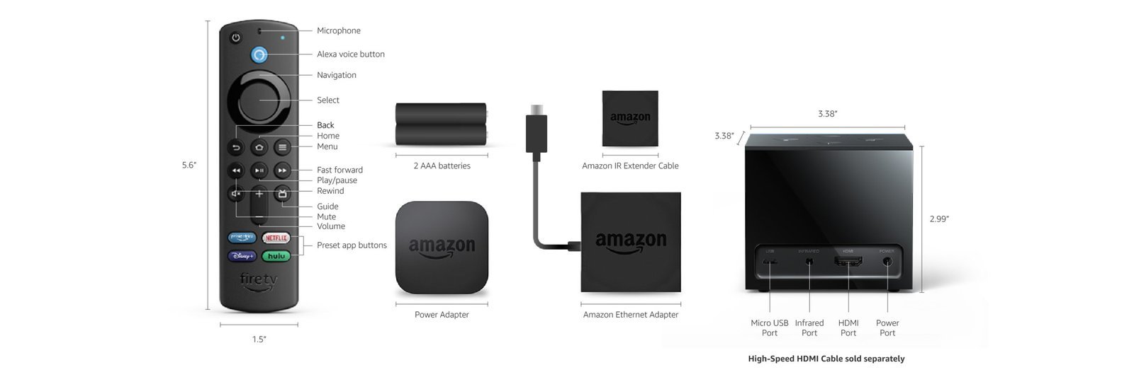 - Alexa Voice Remote – Recherchez et lancez du contenu avec votre voix. Accédez rapidement aux applications préférées grâce aux boutons prédéfinis. Contrôlez la puissance et le volume avec une seule télécommande.