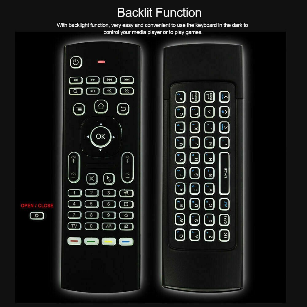 Clavier, souri sans fil, télécommande. Caractéristiques principales: 2.4GHz rapide transmission sans fil sans délai et puissant Résistance aux interférences capteurs d’inertie 6 axes, prend en charge les jeux sensoriels â distance de transmission longue jusqu’à 100 mètres 3 en 1 fonction, souris air / clavier / IR à distance plug and play. Pour: Tv box, iptv, télé smart, camera, projector, ordinateur, etc, fonctionne sur toutes les appareil.