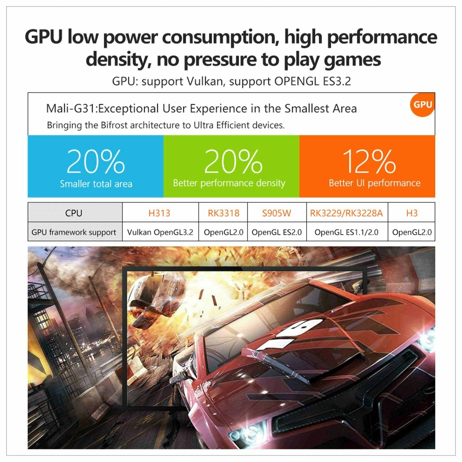 Alimenté par le chipset Allwinner H313 quad-core 64 bits, processeur Cortex-A53.